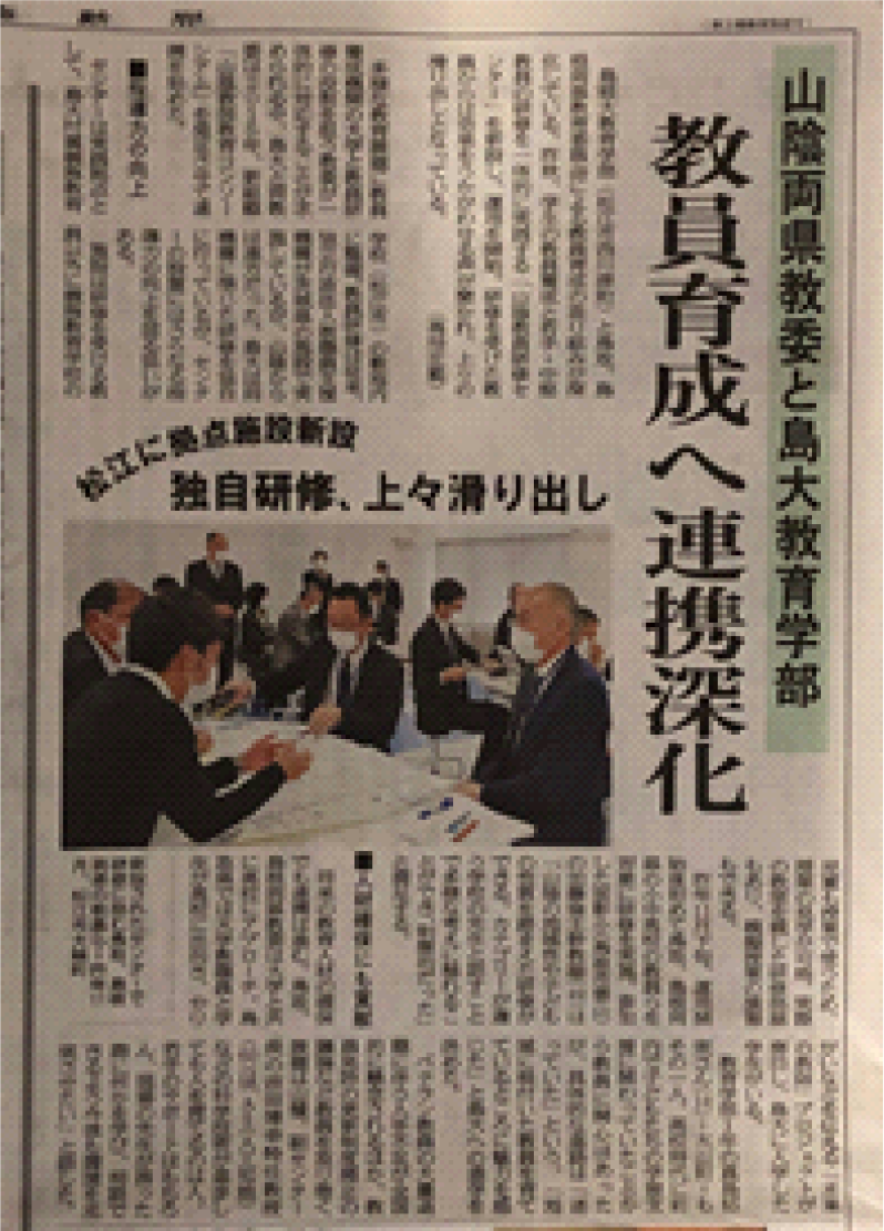 ⇒山陰教師教育コンソーシアムの取組「未来の教師プロジェクト」を通し学生の教職への意欲を養う取組を県教育委員会・島根大・鳥取大と連携を深める。右図は取組状況を伝える記事。
