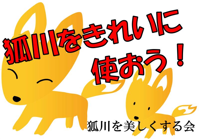 狐川について城北小学校5年生のゲストティーチャーとして共に学んだり、川沿い地域住民の皆さんと清掃活動に励むなど、美化啓発活動を推進している。図は新しく設置した啓発用看板。